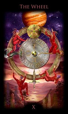 Het getal 10 vraagt om bewustwording en afronding (0) om te komen tot de geboorte van iets nieuws (1). Binnen de tarot resoneert het getal 10 met het ‘Wiel van Fortuin’, de cyclus die we doorlopen om tot afronding te komen. Het Wiel geeft een omwenteling aan. Dat wat in de afgelopen cyclus is losgelaten en geleerd, gaat nu houvast vinden.